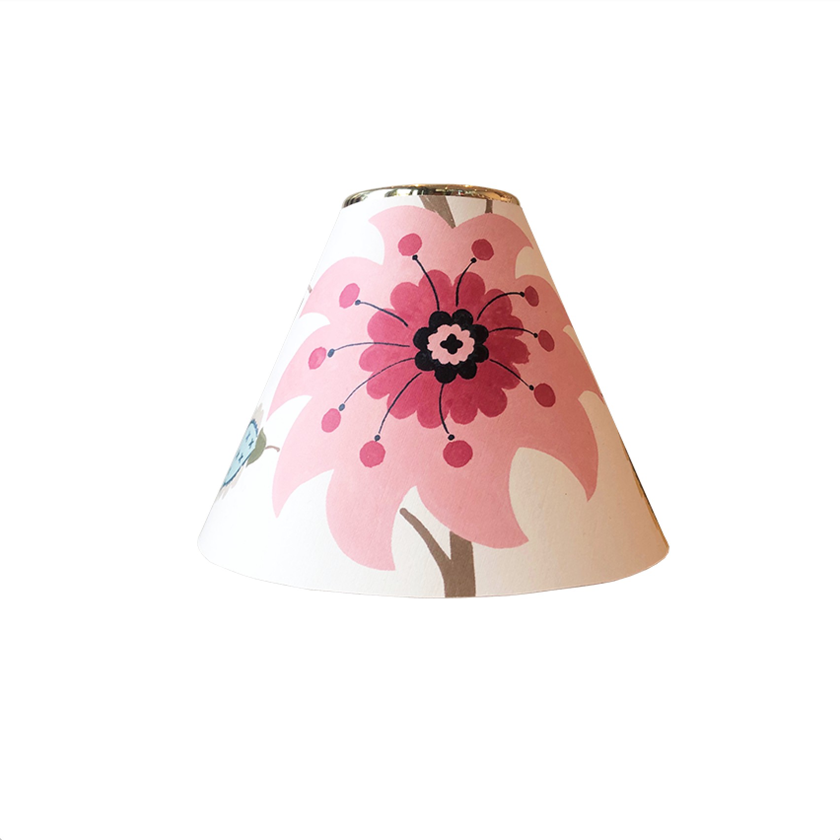Our delightful candle shades feature our Floral Trail Wallpaper design, which takes inspiration from an archive textile design originally hand painted in France c1810-1820 for a fashion textile.