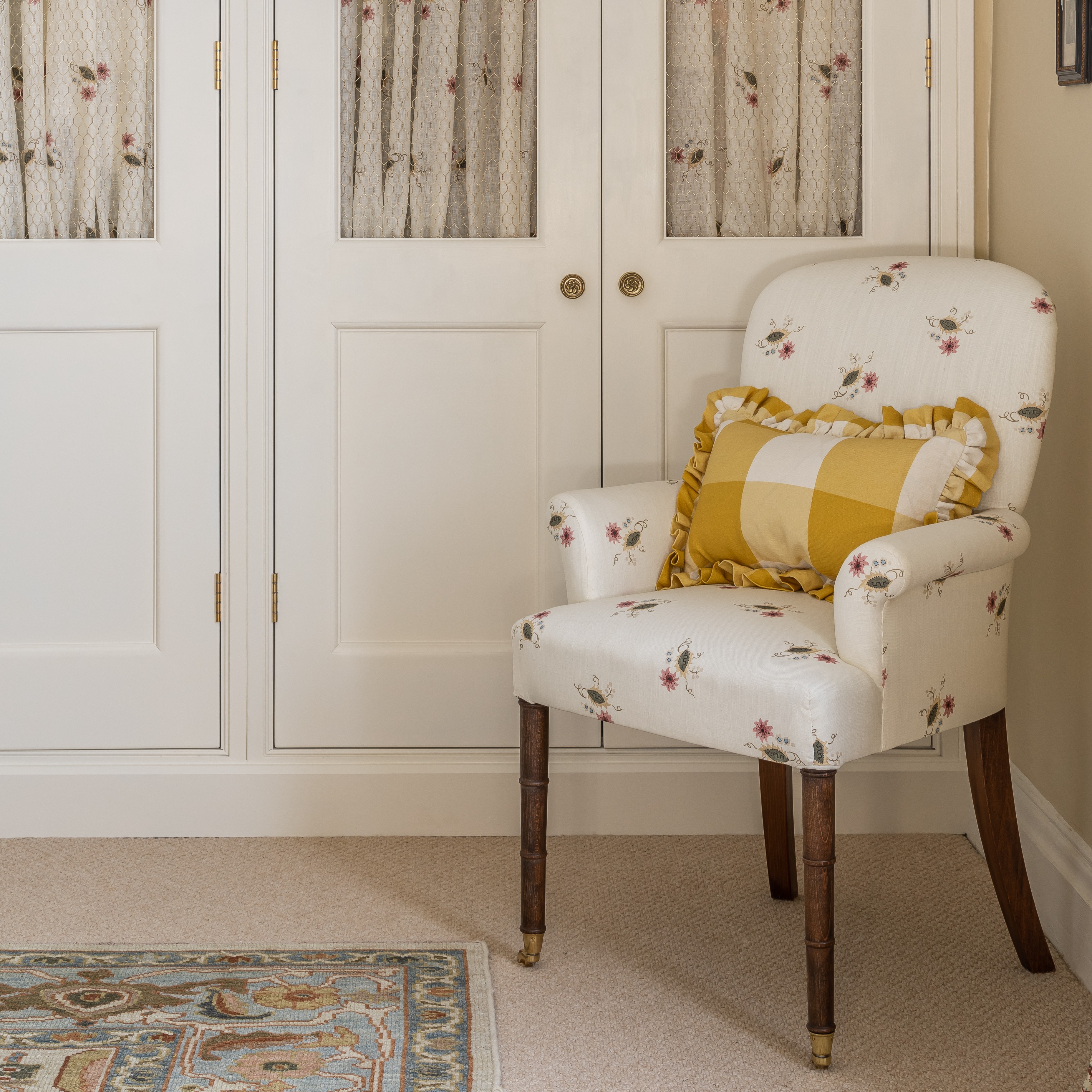 Faced and backed in Great Check, we finished our cushions with a ruffle edge to lend a playful touch with a nod to historical and traditional interior schemes. The feather fill is generous for comfort and uses high quality sustainably sourced feathers. Mary and Nicole like to use our Great Check cushions on an armchair, bed or sofa for a touch of colour and to create inviting layering. Handmade in London, England, the unique scale of the Great Check delivers a contemporary flair that will feel stylish now and in years to come.