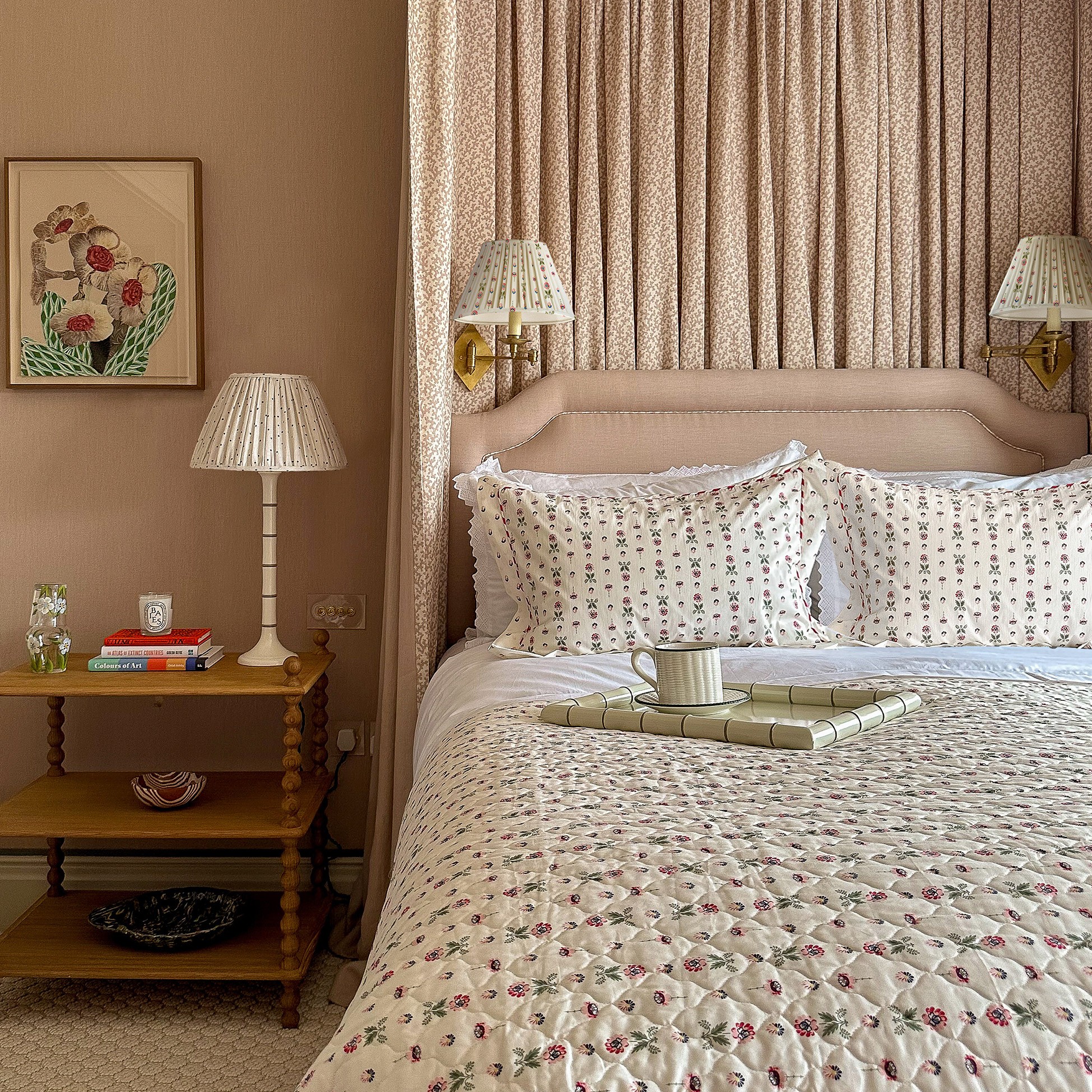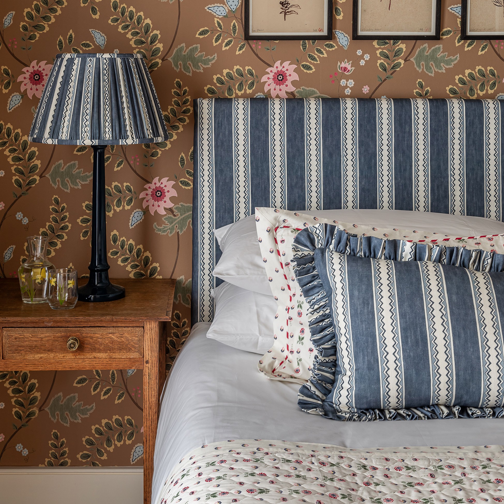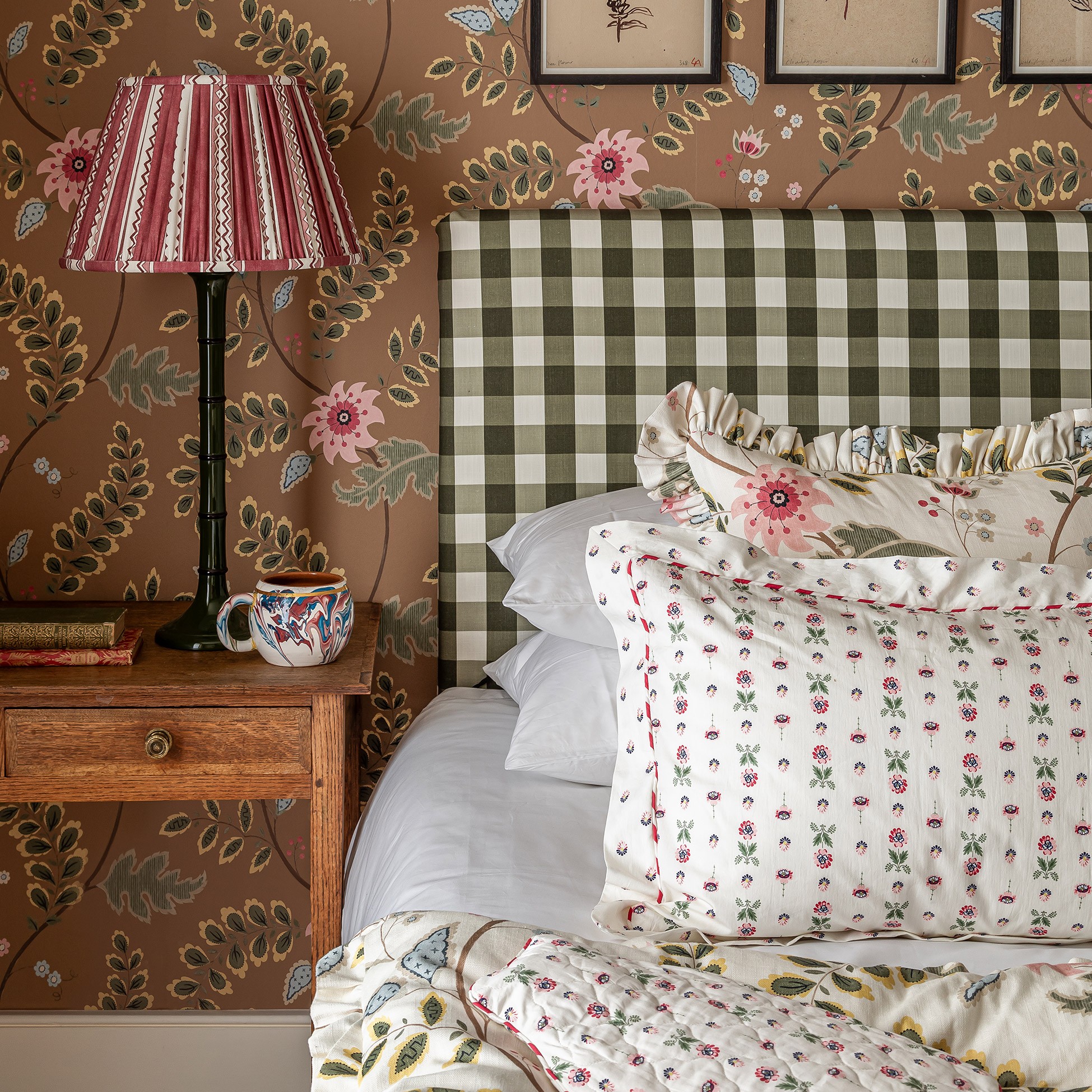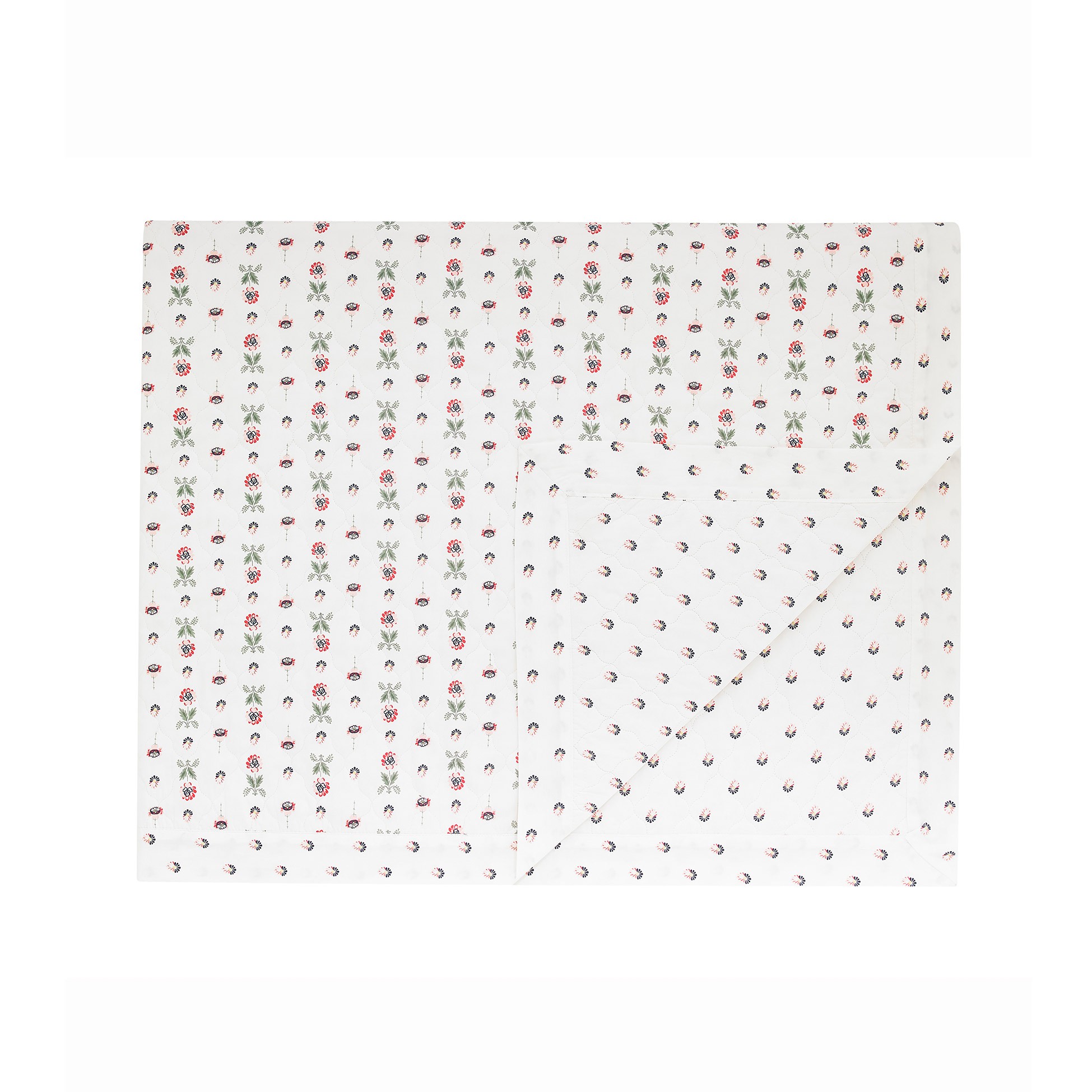 Our quilt is filled with 100% cotton wadding, designed to fit a single bed when positioned vertically, as well as double sizes up to super king when positioned horizontally. the traditional stitch pattern adds a charming design detail, whilst the crisp Oxford edge ties in beautifully with our coordinated pillowcase. This quilt is double sided for layering, with the winter rose motif to the front, and the winter rose bud design to the back. Our quilt is slim but cosy, designed with layering in mind.