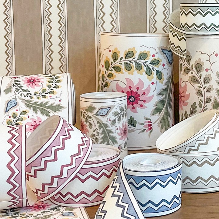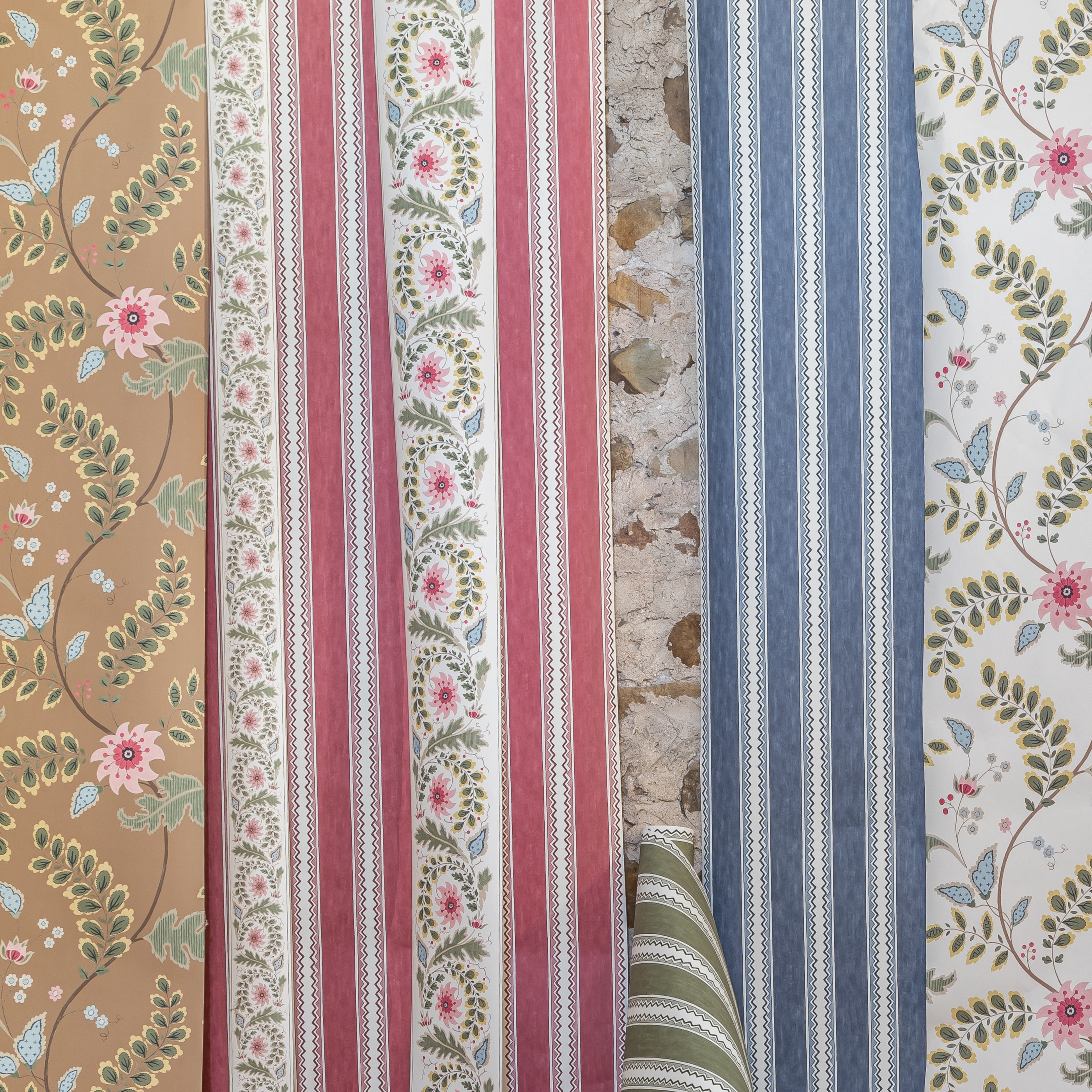 Our borders can be used around door and window frames and other architectural details, or to create extra interest. Co-ordinating with our Floral Trail wallpaper, it was inspired by a textile first designed hundreds of year ago. Mary and Nicole like to use this border with its versatile width as an elegant solution to a room.