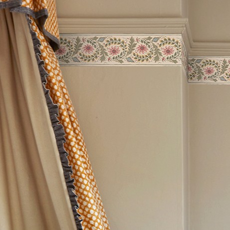 Our borders can be used around door and window frames and other architectural details, or to create extra interest. Co-ordinating with our Floral Trail wallpaper, it was inspired by a textile first designed hundreds of year ago. Mary and Nicole like to use this border with its versatile width as an elegant solution to a room.