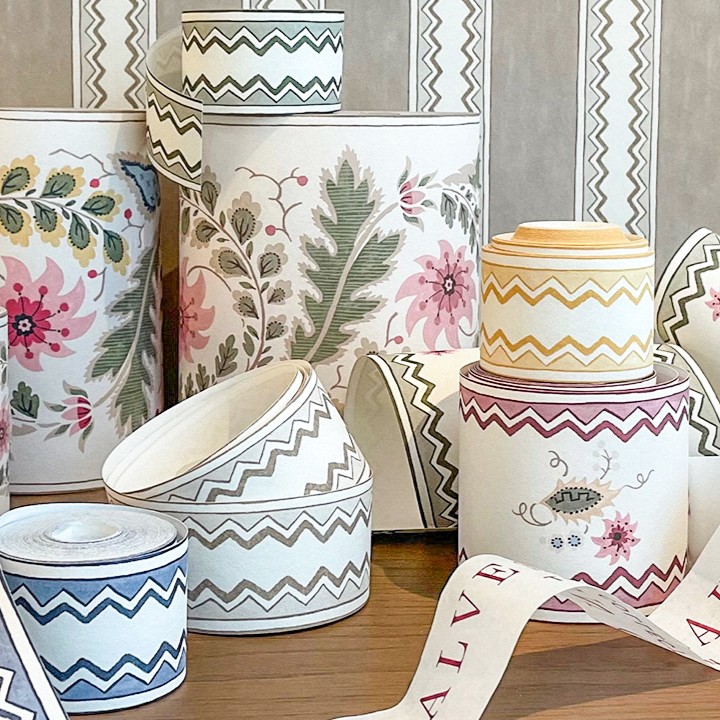 Taking inspiration from an 19th century textile design from France with a delightfully contemporary feel, Our Zig Zag Stripe Borders have endless creative uses and are an easy and joyful way to introduce pattern and colour to your interior scheme. Mary and Nicole like to use this border to lead the eye around the room, lining high skirting borders and door architraves.