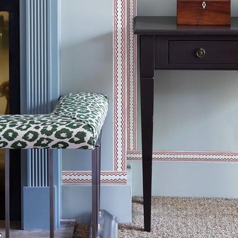 Taking inspiration from an 19th century textile design from France with a delightfully contemporary feel, Our Zig Zag Stripe Borders have endless creative uses and are an easy and joyful way to introduce pattern and colour to your interior scheme. Mary and Nicole like to use this border to lead the eye around the room, lining high skirting borders and door architraves.