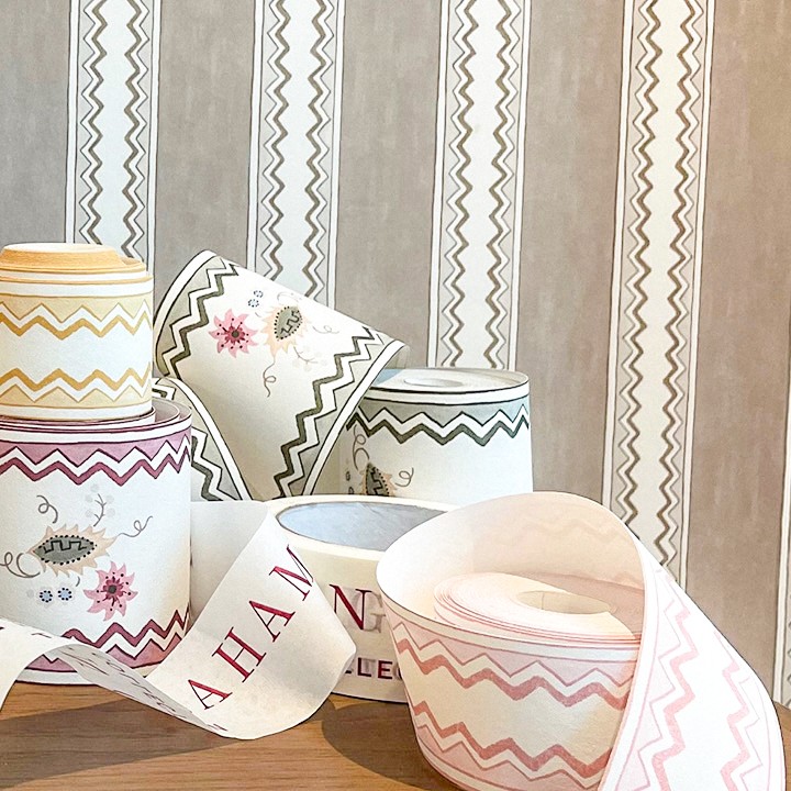 Taking inspiration from an 19th century textile design from France with a delightfully contemporary feel, Our Zig Zag Stripe Borders have endless creative uses and are an easy and joyful way to introduce pattern and colour to your interior scheme. Mary and Nicole like to use this border to lead the eye around the room, lining high skirting borders and door architraves.