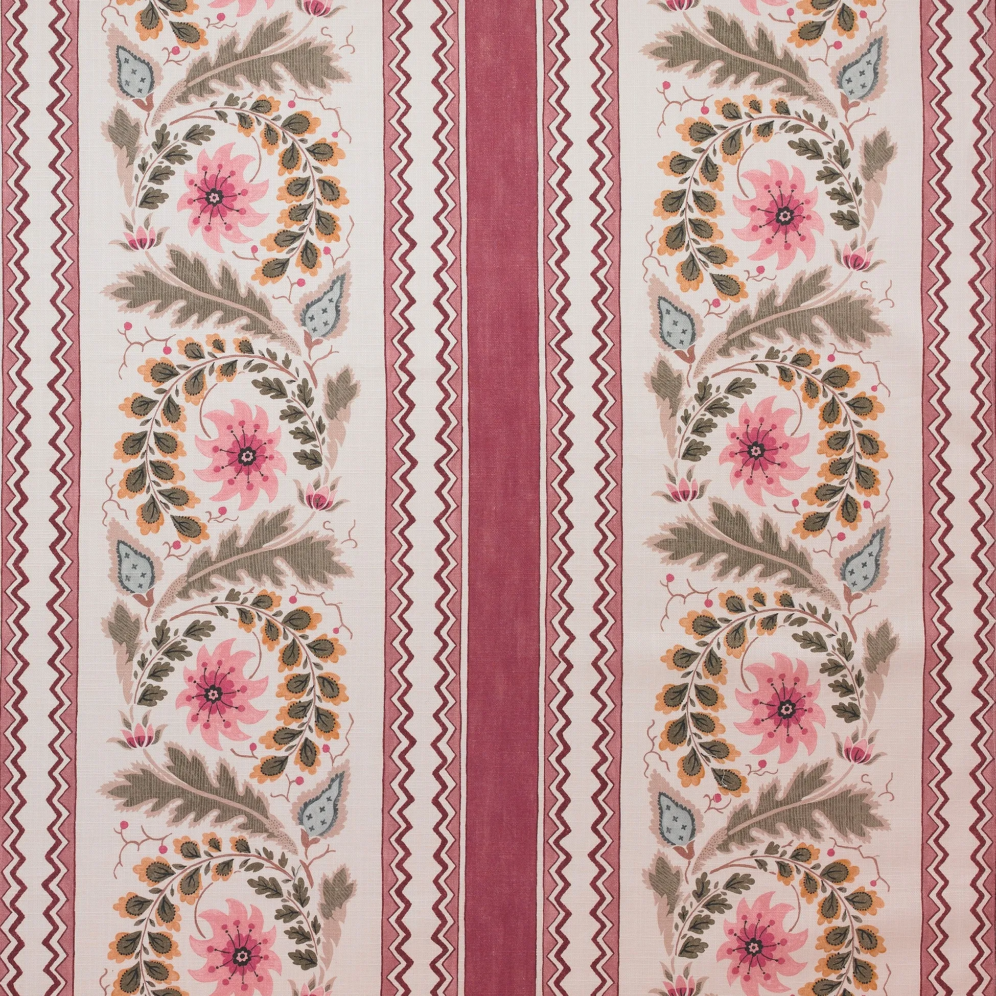 Following the success of our Floral Trail and Zig Zag Stripe fabric collections, Mary and Nicole decided to create a fabric design that married the two, and could be used very creatively in many ways. Taking inspiration from an archive textile design originally hand painted in France c1810-1820 for a fashion textile, this design lends itself to be use both vertically and horizontally, or with different sections of the print to be hidden or revealed to create borders, pelmets and soft furnishings and more.
