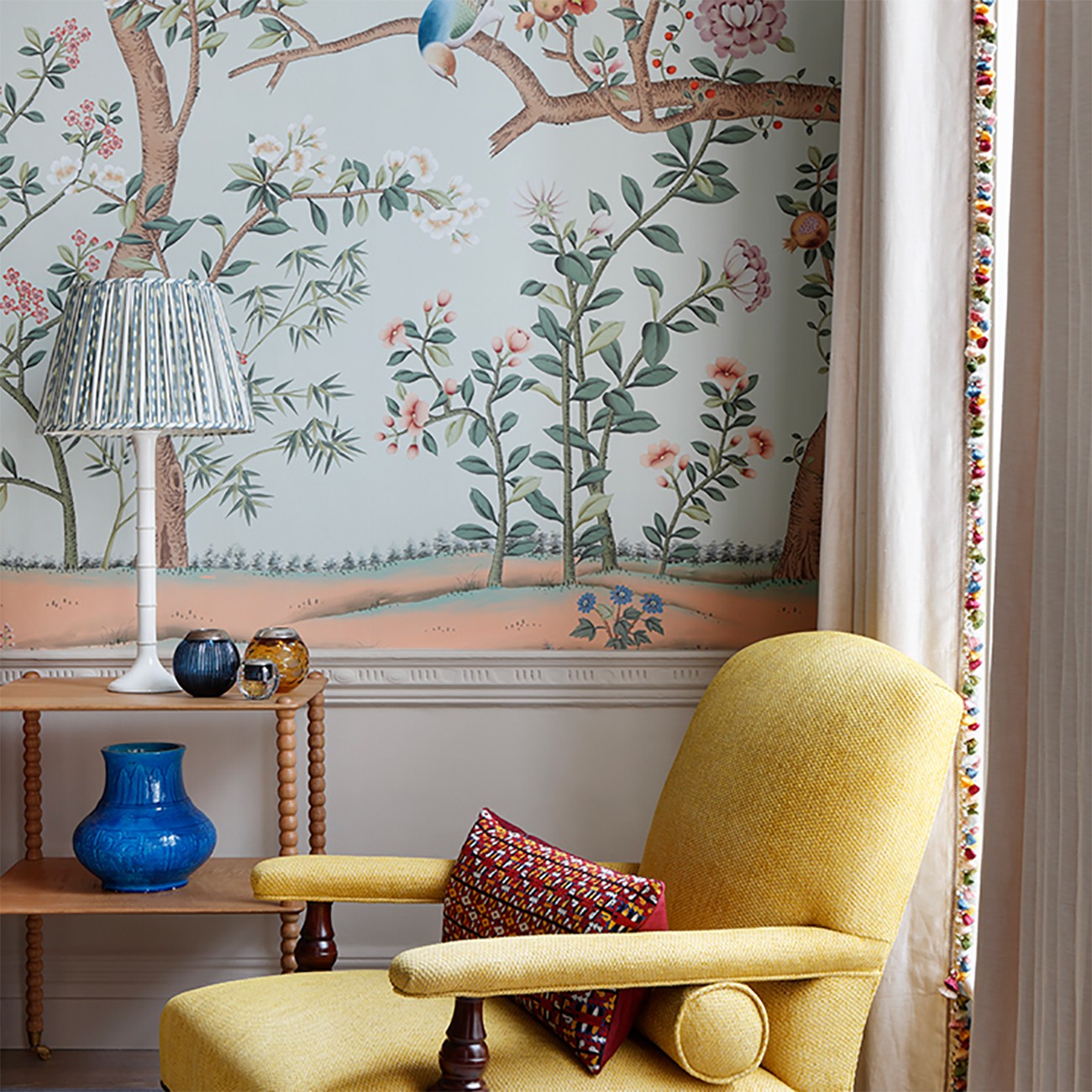 Created in the English countryside from sustainably sourced solid beech wood that has been hand finished by experienced craftspeople, our lamp collection has been carefully designed with a sensitivity to traditional architectural references married with the Salvesen Graham flair for colour and playful design. Complete with a brass stem and natural brown twist cotton flex, our lamps look equally at home in both town and country.