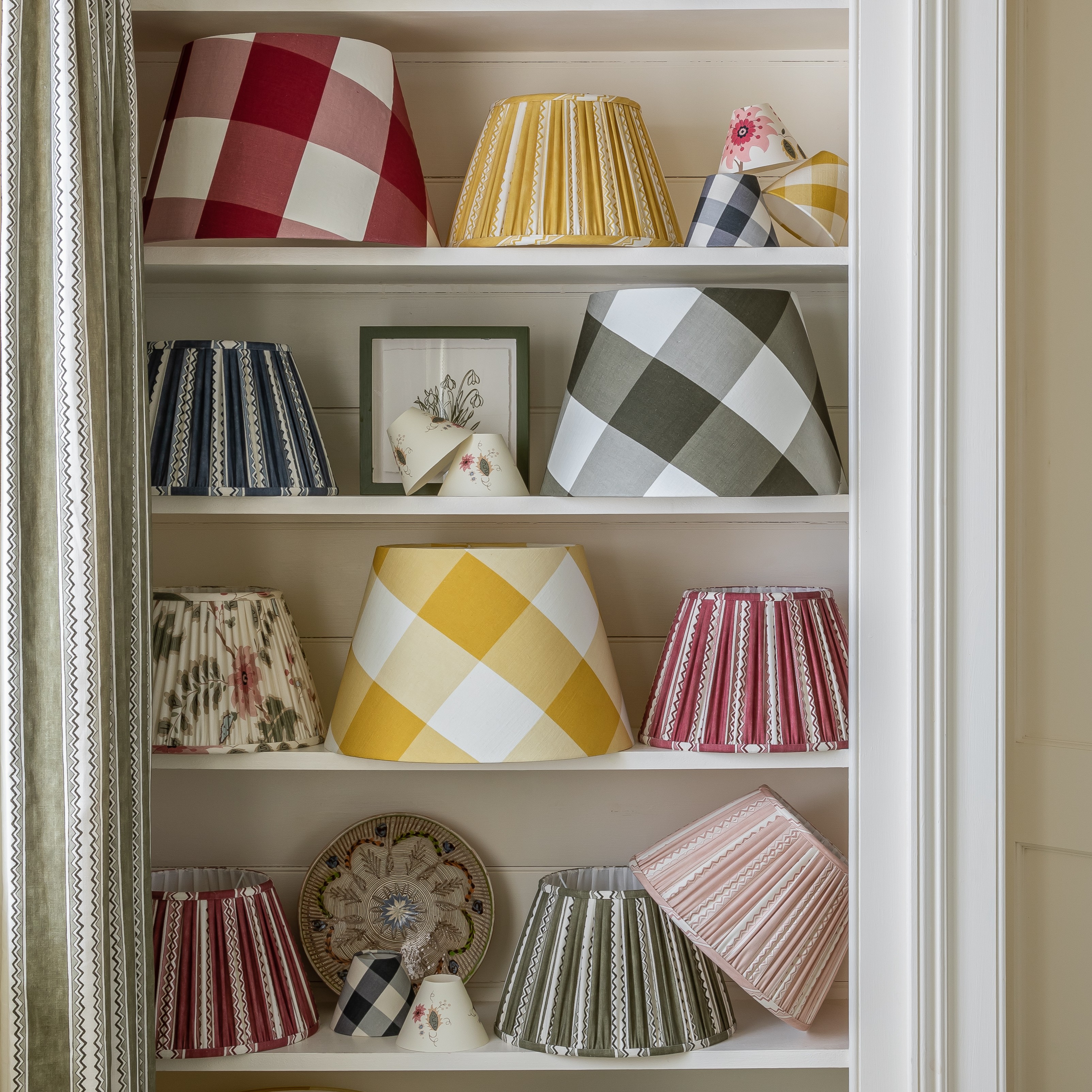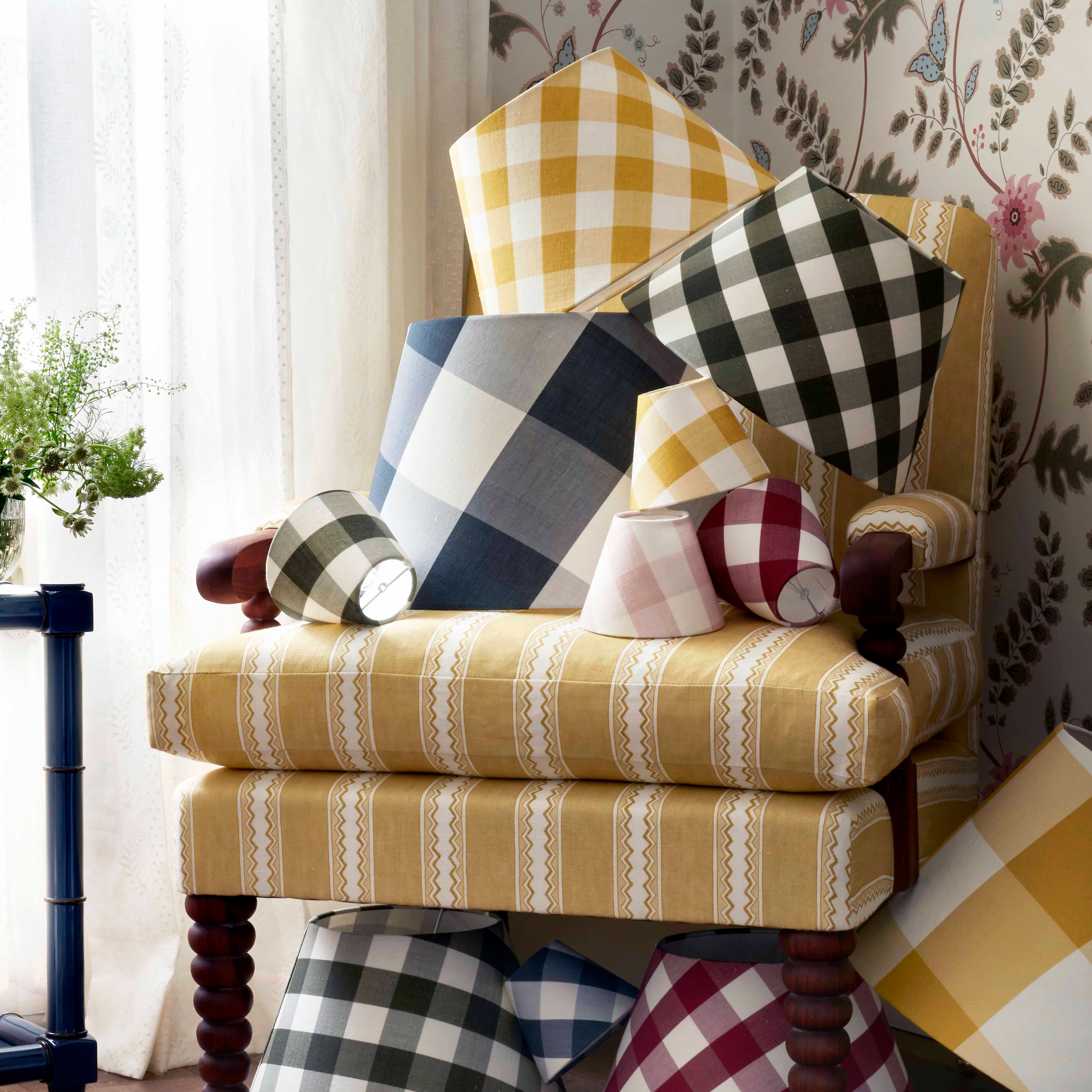 The baby sister of our Little Check Shades, our Little Check Mini Shades in adorable small lamp size are the delightfully playful finishing touch to your wall lights and chandeliers.