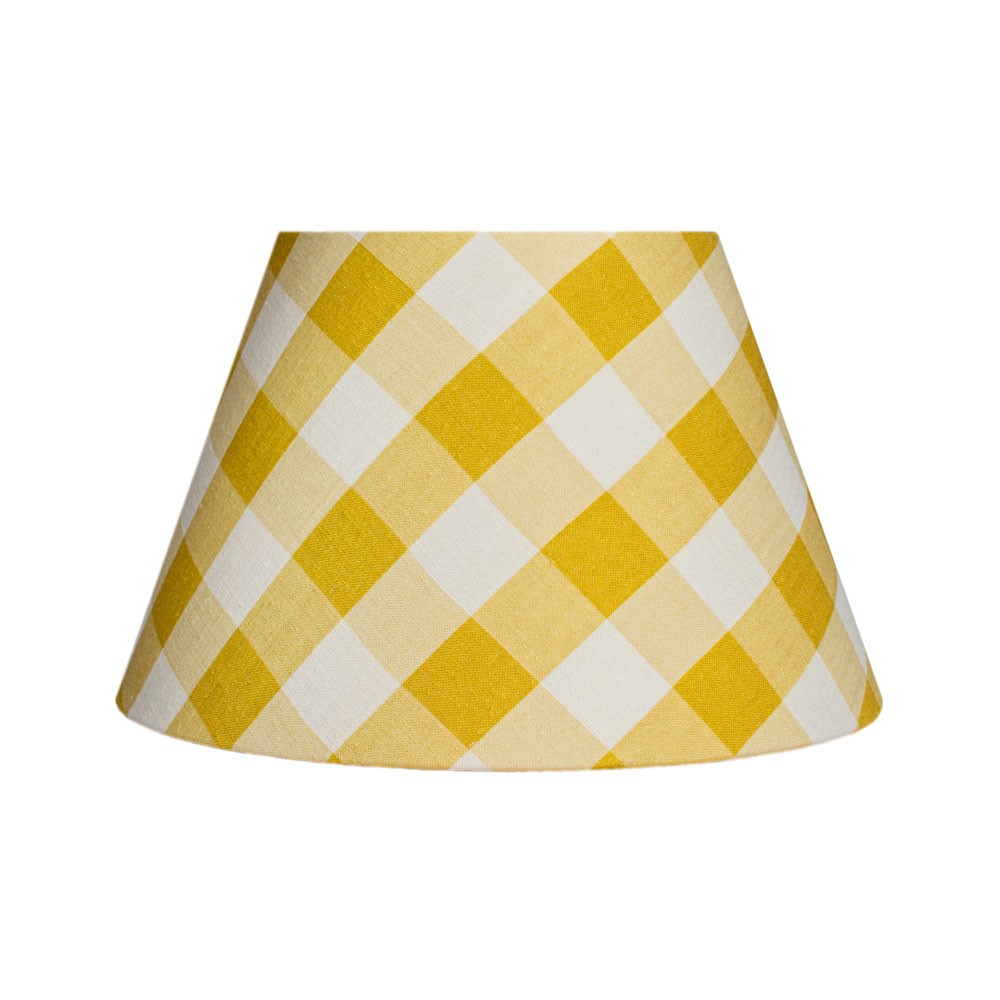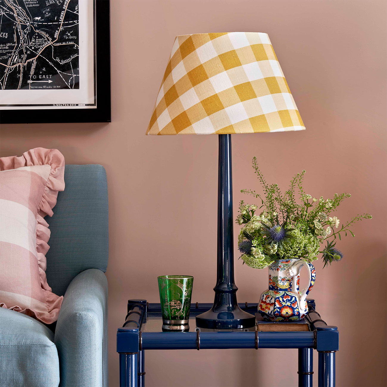 Handmade in London with top and bottom rolled edges, a white interior and empire shape, our Little Check Shades are the perfect partner for our Column and Bamboo table lamp bases. Our shades are crafted from our Little Check linen fabric that is woven in Belgium and printed in England, the soft and slubby nature lends a relaxed and tactile finish to your home. Mary and Nicole designed the shades to be an endlessly versatile table lamps size suitable for most living room and bedroom lamp bases.