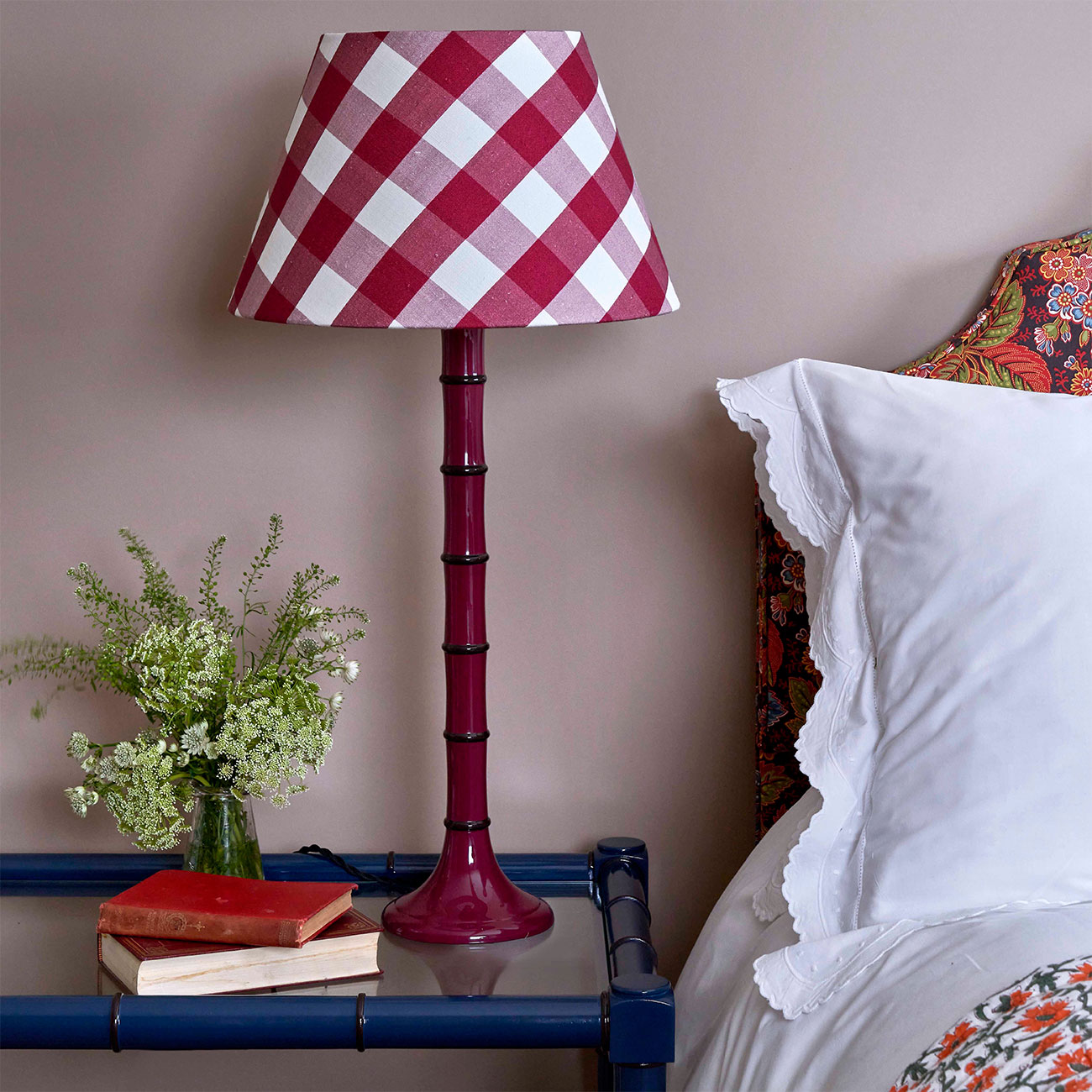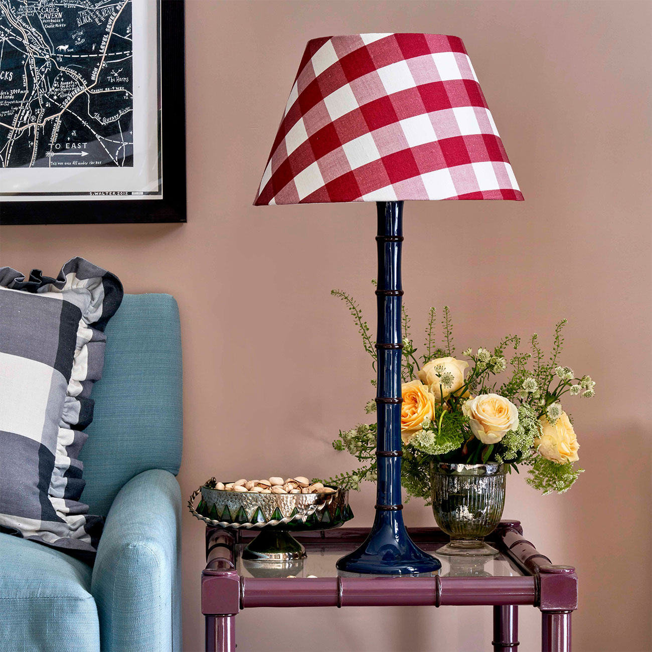 Handmade in London with top and bottom rolled edges, a white interior and empire shape, our Little Check Shades are the perfect partner for our Column and Bamboo table lamp bases. Our shades are crafted from our Little Check linen fabric that is woven in Belgium and printed in England, the soft and slubby nature lends a relaxed and tactile finish to your home. Mary and Nicole designed the shades to be an endlessly versatile table lamps size suitable for most living room and bedroom lamp bases.